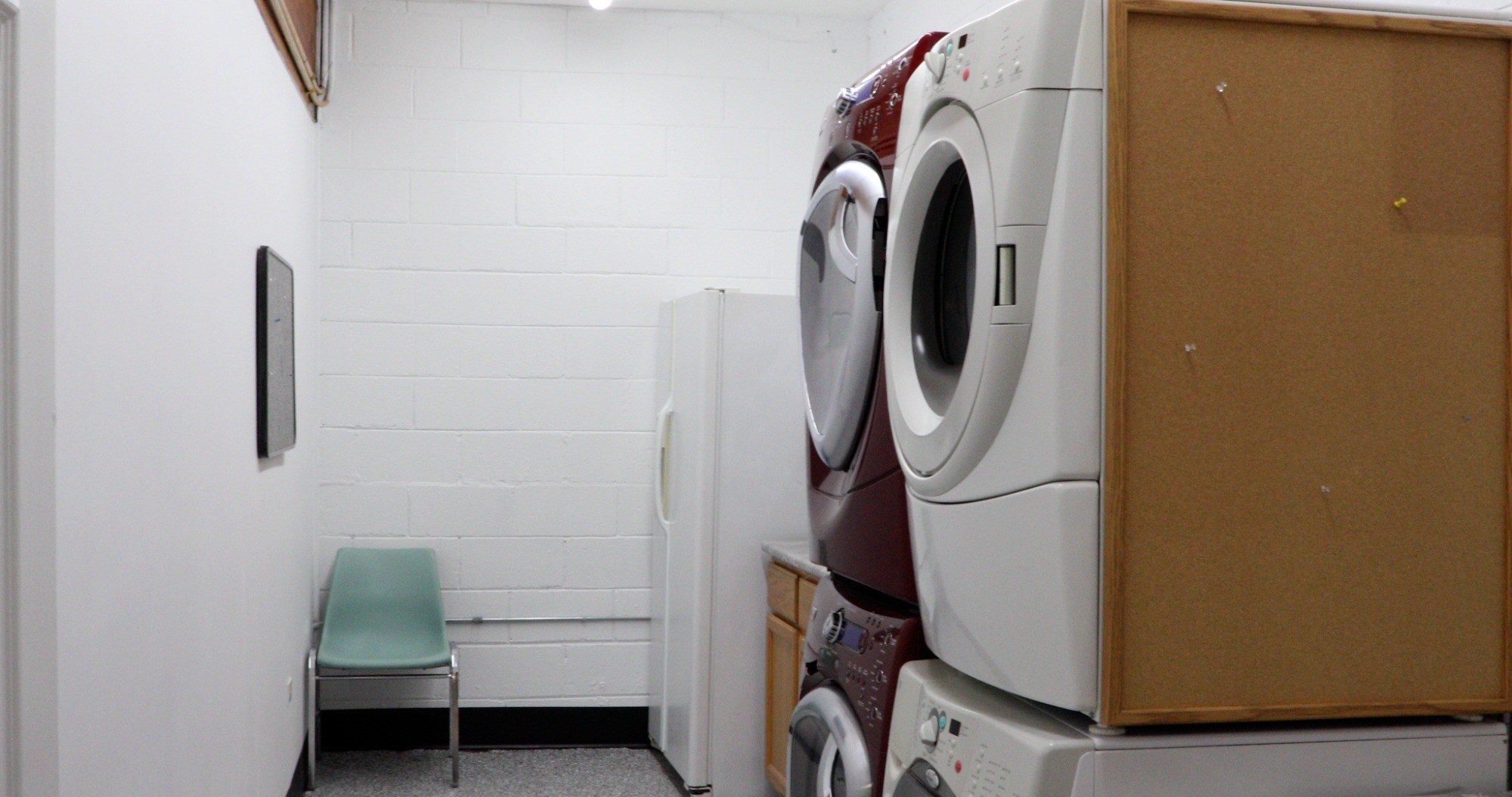 -FREE on-site washer and dryer in the break room with hamper stations.